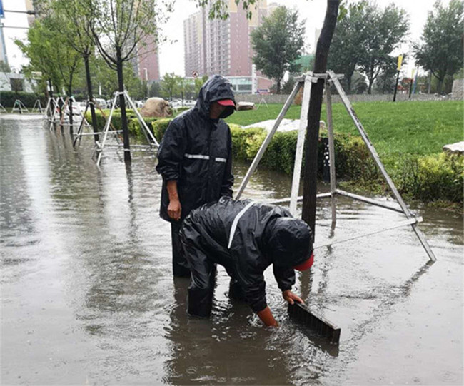 “市政、绿化公司参加防汛的员工,一定听从安排,快速行动”“积水较多的地方要劝阻车辆,禁止通行”“打开排水井盖,设专人看守,减少地面积水”“1,2,3,推!”......这是总经理李良发同志积极组织员工防汛抢险的现场。防汛人员穿着雨衣雨靴,部分人员因时间紧迫,直接穿着自己的衣服赶到现场。所有人顶着大雨,分布在高新区各个防汛抢险点进行防汛工作。雨水淋湿了他们的头发,浇透了他们的衣服,灌进了他们的鞋内,但此时没有人在意这些,看着他们焦急的眼神中带着一丝坚定的信念,专注的配合工人工作,任凭谁看了都会动容。